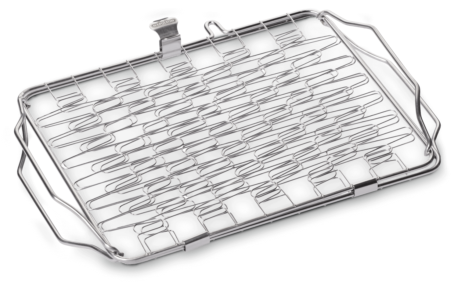 Perfect for a multitude of different dishes, the Napoleon Flexible Grill Basket cradles food gently between two hinged sides for effortless grilling. Ideal for fish, vegetables, and perfectly grilled sandwiches, this accessory makes handling multiple, delicate foods easy. Integrated handles mean that moving, flipping, and adjusting meals on your grill is super simple. Not only does the durable stainless steel of the Napoleon Flexible Grill Basket heat evenly, but it’s also easy to clean; just throw it in the dishwasher so it’s ready for your next grilled creation. Meals using the Napoleon Flexible Grill Basket are only limited by your creativity.
